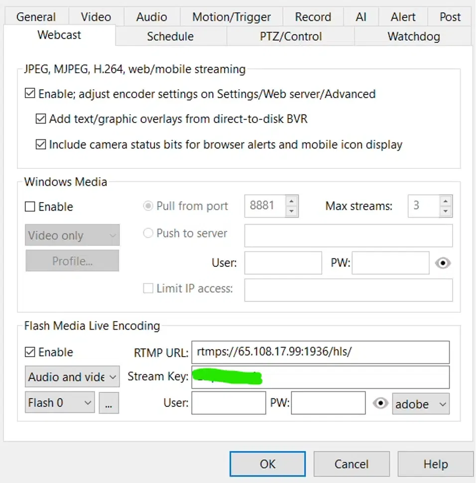 If you want to stream from Blue Iris to Camlocus, it can be done easily by going to Camera Settings -> Webcast: