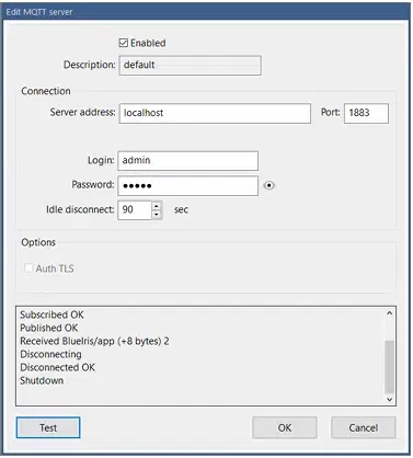 The Test button will setup a loopback, both publishing and requesting the same topic in