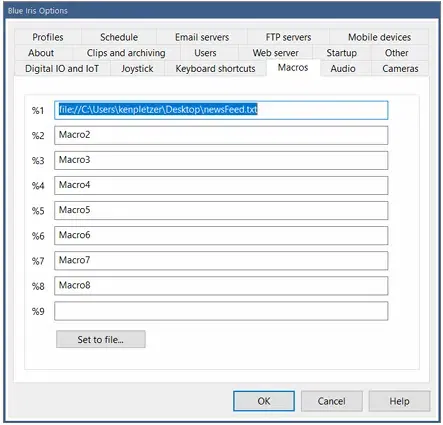 and Blue Iris will immediately adopt the new text. It’s also possible to link a macro to a text