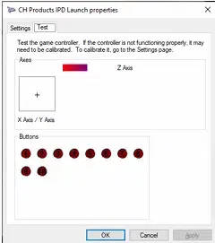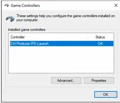 You must use the Control panel button to get to the joystick driver’s properties page.