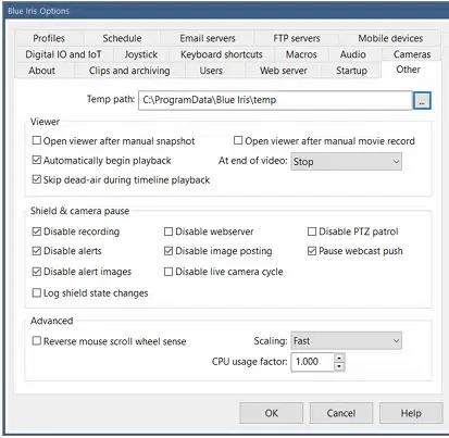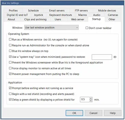 Many startup options control the way in which Blue Iris works with the operating system.