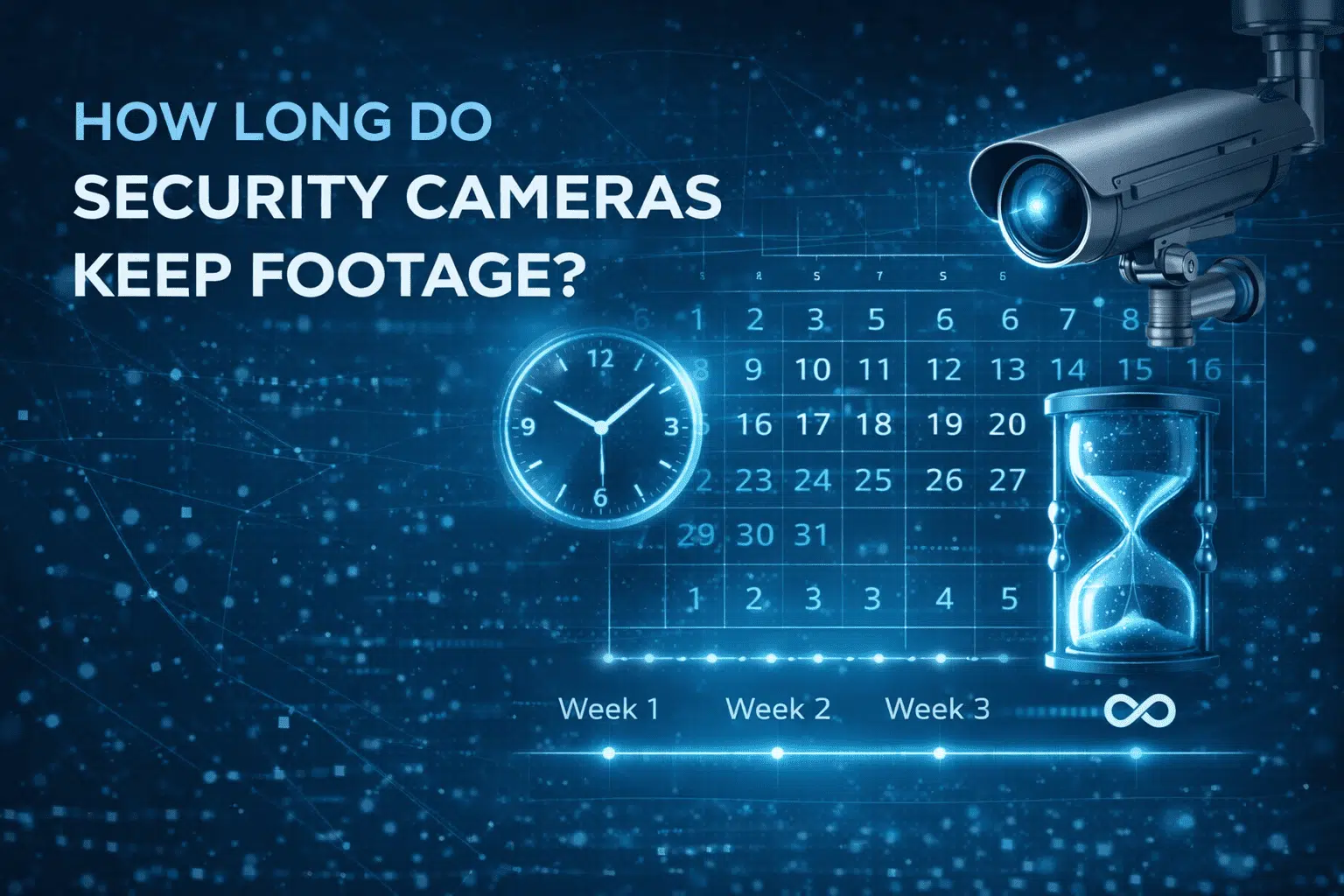 In practice, many security camera systems retain footage for 7 to 30 days. Systems with larger storage capacity or optimized recording settings can store footage for longer periods, while smaller or heavily used systems may retain footage for only a few days.